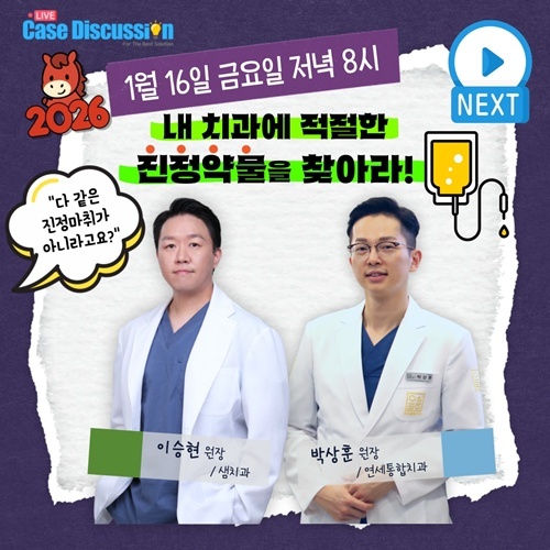 'Case Discussion'은 임상에서 만날 수 있는 여러 케이스에 대해 여러 각도에서 의견을 나눌 수 있는 프로그램으로, 올해도 유익한 노하우 전달에 집중할 예정인데, 오스템임플란트에 따르면 오는 16일 20시 샘치과 이승현 원장, 연세통합치과 박상훈 원장이 출연해 '내 치과에 적절한 진정 약물을 찾아라'를 주제로 첫 방송이 진행된다. 이 방송에서 두 원장은 진정 마취의 종류와 방법 등 세부적인 정보는 물론 실제 임상에 적용할 수 있는 노하우와 시청자가 고민했던 케이스를 함께 보면서 해결책을 제시할 계획.
