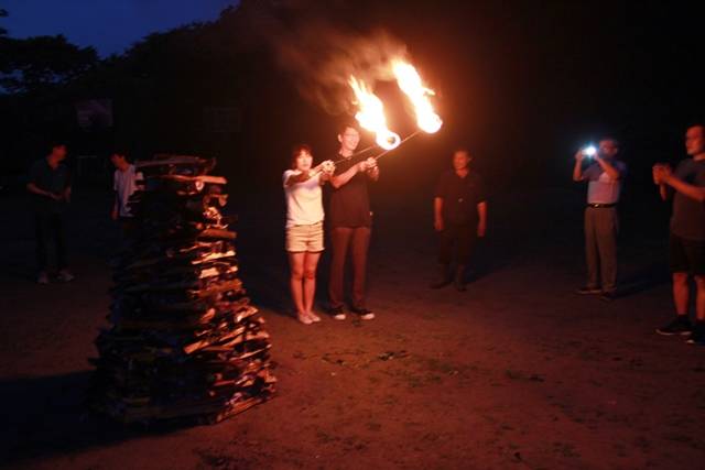 저녁 식사 후에 가진 캠프파이어에선 참가자들이 한 사람씩 자기 소개를 하며 저마다 소원을 적은 쪽지를 모닥불에 태워 날려보내는 행사도 가졌는데, 참가자들은 한결같이 '오랜동안 함께, 즐겁게 봉사할 수 있기를' 빌었다. 일행은 이튿날 오전에는 연수원 강당에 모여 조별로 퀴즈대회를 갖는 등 즐거운 시간을 보냈다.