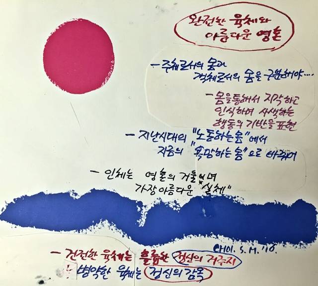 건전한 육체는 정신의 훌륭한 저주지가 되고 병약한 육체는 정신의 감옥이 된다. 육신은 영혼의 바탕이고 영혼은 육신의 자용이다. 인체(육신)는 영혼의 거울이며 가장 아름다운 실체이다. “완전한 육체는 그 자체가 영혼이다”