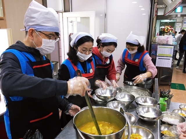 강릉원주대학교치과병원(병원장 엄흥식)이 지난달 30일 강릉시 입암동 소재 강을종합사회복지관을 찾아 점심 배식 봉사활동을 펼치고 후원금 100만원도 전달했다. 엄 병원장 등 치과병원 솔아름나눔봉사단 14명은 이날 복지관에서 어르신들에게 직접 배식을 하고 설거지와 청소에도 일손을 도왔는데, 거동이 불편한 어르신들을 위해서는 직접 도시락을 배달하기도 했다.