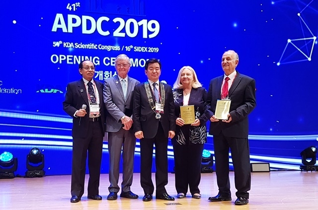 김 협회장은 이어 APDF 회장으로서의 첫 역할로 페르난도 페르난데즈 APDF 전 회장에겐 감사패를, Kathryn Kell FDI 회장과 Patrick Colgan · Munir Amro APDF 전 부회장에겐 공로패를 각각 수여했다.