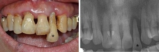 치주염은 염증이 잇몸을 넘어서서 치조골까지 확장되어 치아가 흔들리며 잇몸이 내려가게 되고, 시리거나 음식을 씹을 때 힘이 없는 느낌 또는 통증이 발생한다. <위 사진>