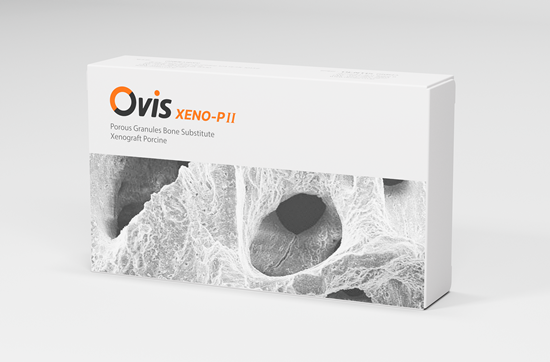 ‘OVIS XENO-PⅡ’는 Hydroxyapatite(HA)로 구성된 돼지뼈 이종골 이식재로, 우수한 기공 구조와 물성을 기반으로 신생골 형성을 촉진하는 제품이다.