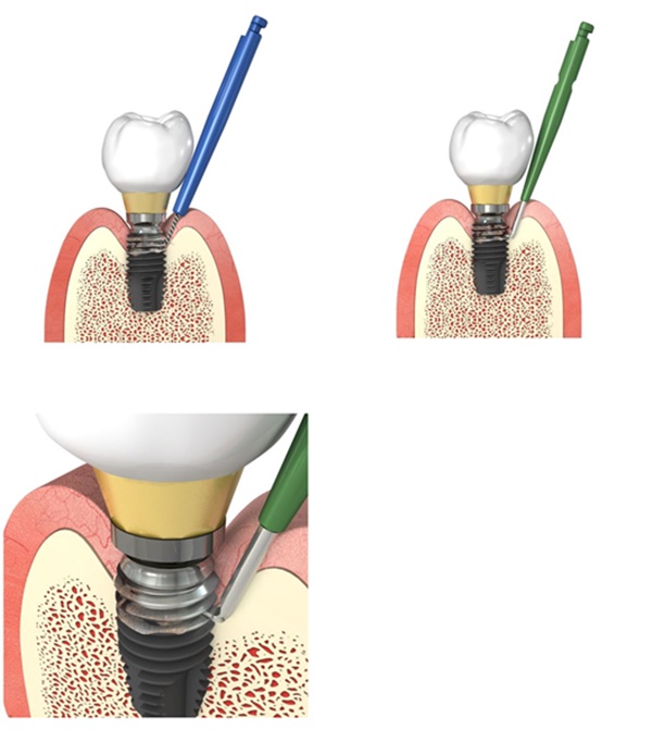 임플란트 표면의 염증이 임플란트 전체에 발생한 경우에는 R-Brush를 사용하고, 임플란트 표면 일부분에 염증이 발생한 경우에는 i-brush 제품군을 사용하는 것이 효과적이다.