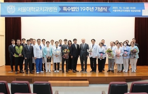 서울대치과병원(병원장 이용무) 특수법인 19주년 기념식이 지난 13일 오후 4시, 병원 8층 대강당에서 열렸다. 이날 기념식에선 병원과 노동조합의 19년 무분규 상생을 기념하는 화분 증정식과 장기근속직원 표창이 진행됐다.