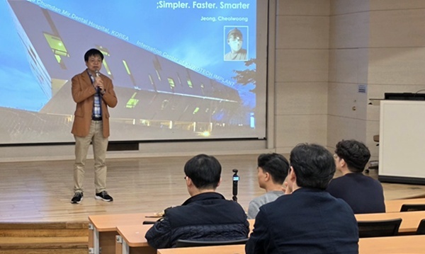 이정삼 원장(웃는하루치과)은 임플란트의 생물학적 기초와 장기적 성공을 위한 원칙을 중심으로 강연을 진행했다. 임플란트 주위염 예방을 위한 보철물 출현각 조절과 3차원적 식립 위치의 중요성을 강조하며 참석자들의 관심을 모았다.