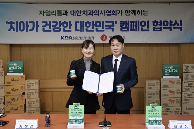 대한치과의사협회가 롯데웰푸드와 손잡고 국민 구강건강 증진을 위한 사회공헌 활동을 이어간다. 치협은 지난 23일 치과의사회관 대회의실에서 롯데웰푸드와 ‘치아가 건강한 대한민국’ 캠페인 협약을 체결했다. 이날 협약식에는 황혜경 부회장, 최종기 대외협력이사와 롯데웰푸드 최규상 지원본부장, 조능제 CSR부문장 등이 참석했다.