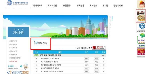 먼저 부산광역시치과의사회(회장 고천석)는 ‘부산의 맛집’ 코너를 게시판에 배치, 눈길을 끌고 있다.