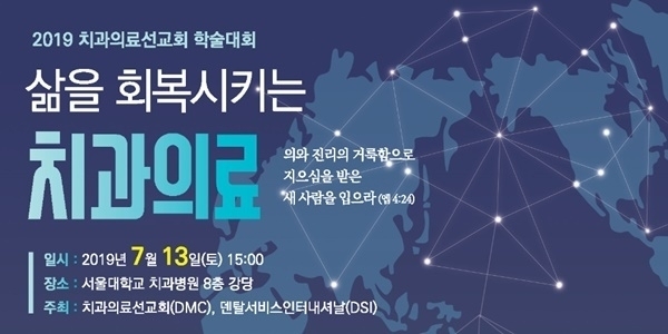 2019 치과의료선교회(회장 김명진) 학술대회가 '삶을 회복시키는 치과의료'를 대주제로 오는 13일 오후 3시 서울대치과병원 8층 강당에서 열린다.